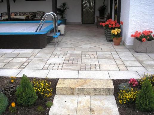 Durch die Verwendung von Granitwürfeln sind der Fantasie kaum noch Grenzen gesetzt. Wechsel im Verlegemuster, Ornamente, Einfassungen, optische Trennungen...etc. sind so ganz leicht möglich, lockern größere Flächen auf und lassen so keine Langeweile zu